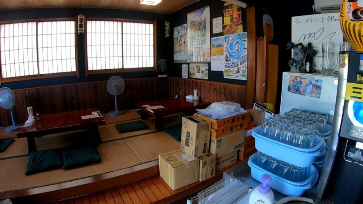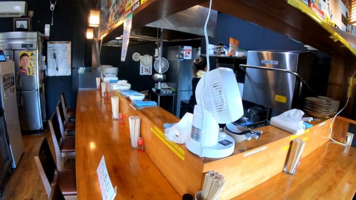 女店長一人のワンオペ営業のため、お冷の用意からラーメンの受け取り、片付け、テーブルの拭き清掃、全てがセルフのフルセルフとなっています。