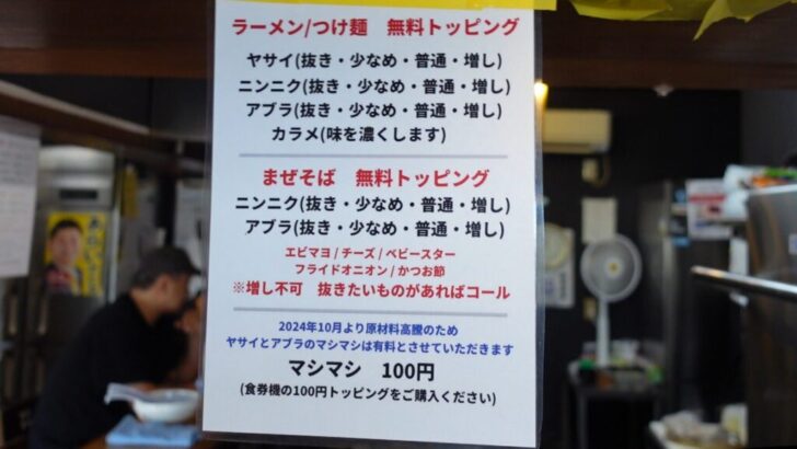 ヤサイ・ニンニク・アブラはマシまで無料、マシマシはプラス100円