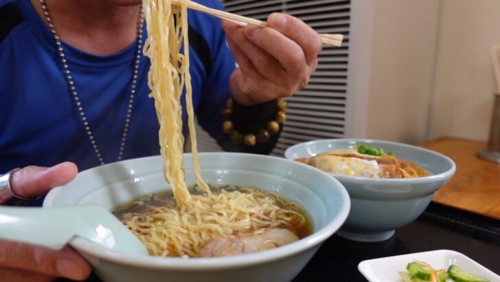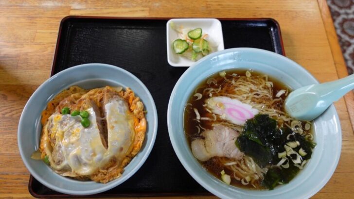 名前からしても丼ぶりの配置からしてもカツ丼が主役のご機嫌セットなわくですが、ラーメンも負けず劣らず。