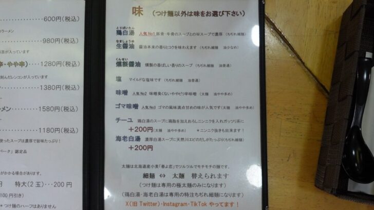 ラーメンのメニューがおもしろいんですよ。好きなラーメンを選んだら自分で味を決められる愉快痛快なシステム