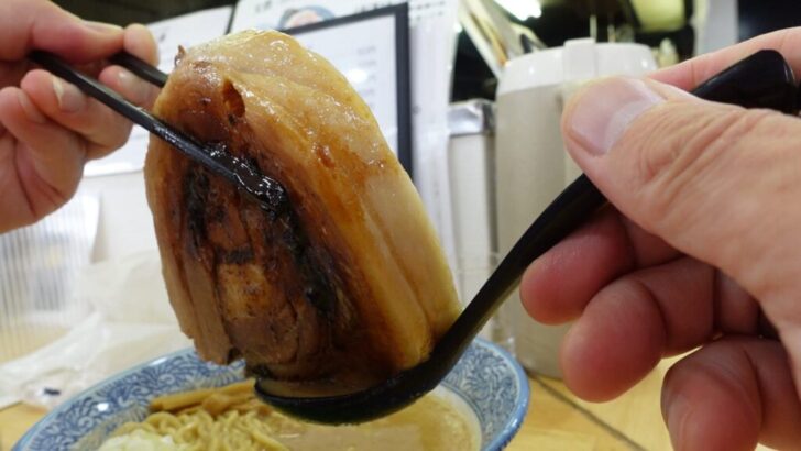箸でつかむと崩れてしまいそうな柔らかすぎるチャーシューリキ、切れてないですよ!