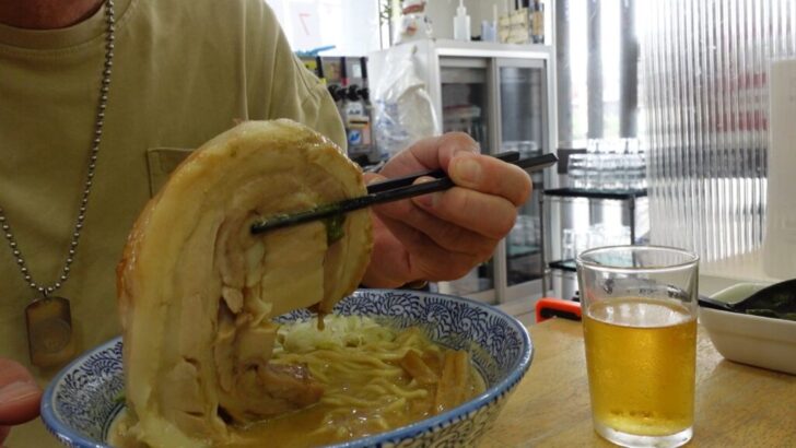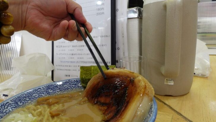 デカくて分厚い300gのチャーシューの全貌があきらかになりました。