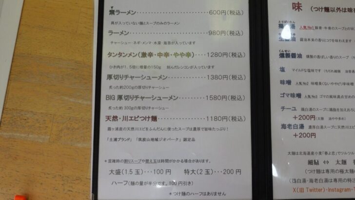 売りは濃厚鶏白湯、地元霞ヶ浦産の川エビを使った「川エビつけ麺」だったり学生は割引してくれる「学割り」だったり、ラジバンダリ。