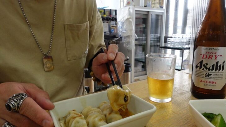 まずは、キンキンに冷えたアサヒスーパードライと特製蒸し餃子なるアテを召喚しました。