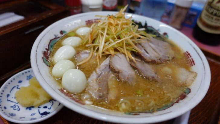 惜しみなく敷き詰められたチャーシューにホワイティーなうずらのタマタマが映える。