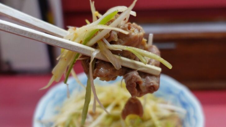このもつ煮、ラーメンみたいに辛ネギをトッピングできるとのことなので迷わず投入、実に面白い!
