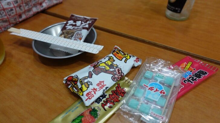 駄菓子がお通しになるスタイルのようで、お酒を飲まなくても550円のお通し代が発生するんだけど、そんなの関係ねー!