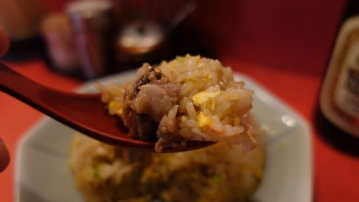 山頂に角切りチャーシューがこれでもかってほどめりこんだワイルドチャーハンです。