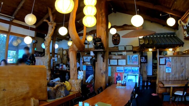 古民家を改装したナウい店内、ウッド調を通り越し、大自然が溢れまくる「こえだちゃんの木のお家」のような店です。