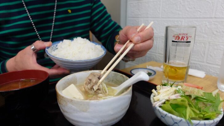 とろけるまでに十分に煮込まれたもつは、まさしく口の中でとろけていきます。