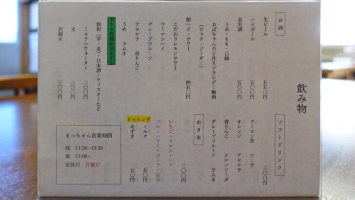 店主は以前、川島駅前で「居酒屋まっちゃん」をやっていたり、筑西市甲で「めんや まっちゃん」をやっていたハレンチ極まりない経歴の持ち主です。
