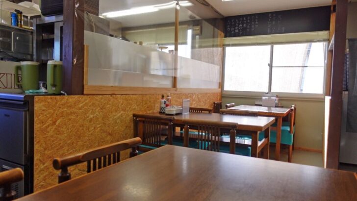 4人掛けのテーブル席が3つと、2人掛けのテーブル席が1つのこぢんまりとした店内