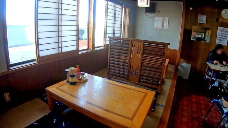 カウンターに2席、4人掛けのテーブル席が3つ、小上がりには4人座りのテーブルが2つ設置されていました。
