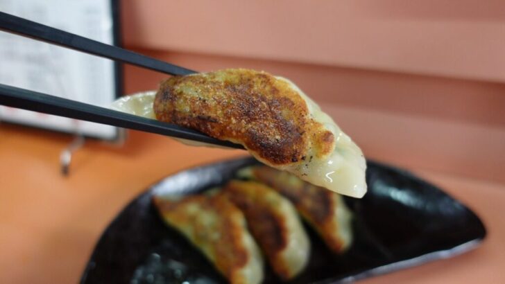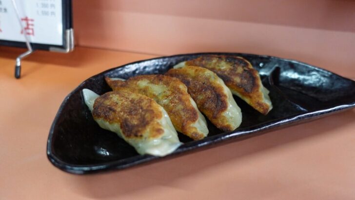 パリっと焼かれた焼き面、餡には生姜が入っていて食欲がそそられる餃子です。