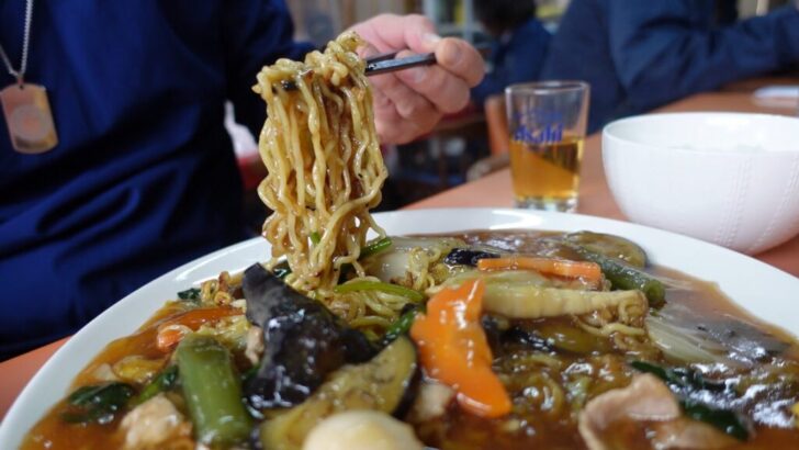 こんがり焼かれた麺が香ばしいあんかけやきそばの様子はYouTubeでご確認ください。