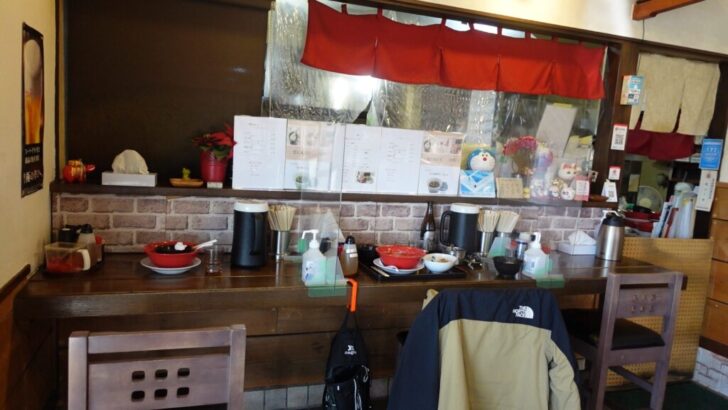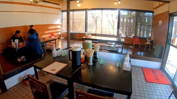 カウンター席、テーブル席、小上がりがありました。テーブル席は1人用のテーブルが集合されて作られています。