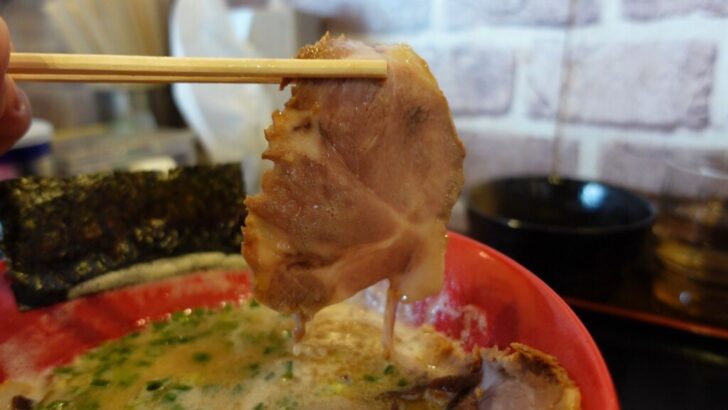 そしてやって来たのが博多とんこつラーメン、チャーシューをトッピングで増量しています。