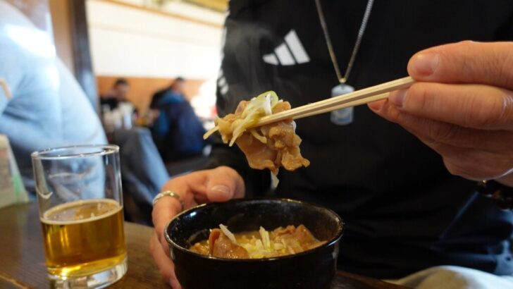 私は2時間ほど考えた末、おつまみコーナーからもつ煮込みをチョイスして軽く一杯。