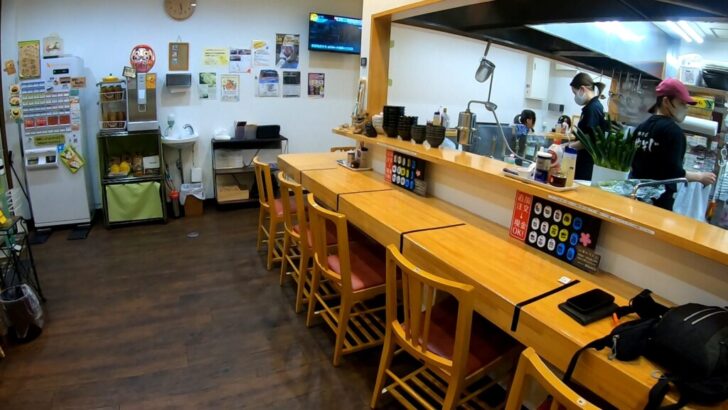 とりま、食券をスタッフに渡してカウンター席の1番端っこにスタンバイします。