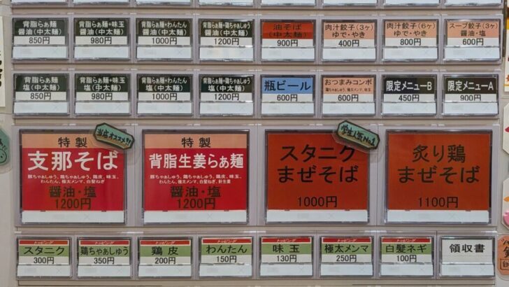 醤油と塩を軸に生姜ラーメンや背脂ラーメンと枝分かれしたメニュー、まぜそばなんかもありました。